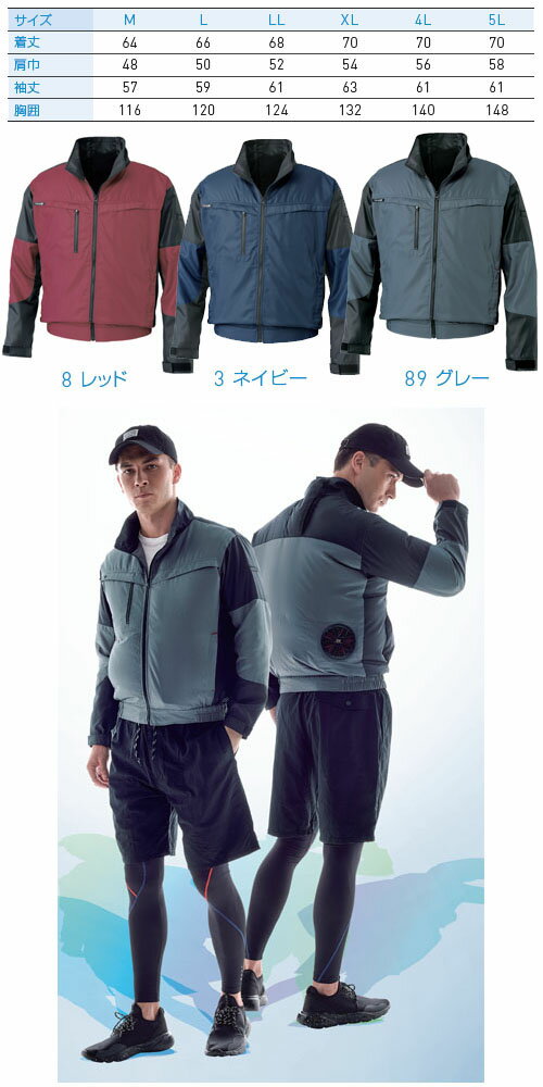 仕様カラー:レッドサイズ:XL着丈(cm):70肩巾(cm):54袖丈(cm):63胸囲(cm):132材質ドビー(ポリエステル100%)※一時的な撥水機能を備えた、空調風神服最薄・軽量素材です。