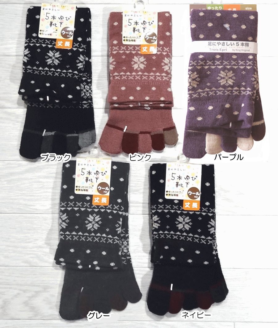 5本指ソックス 秋冬におすすめウール混 かわいらしくてお洒落なウール混の5本指ソックスレディースサイズです! 口ゴムがゆったりしたタイプですので履きやすいです。