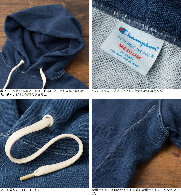 チャンピオン パーカーリバースウィーブ インディゴ プルオーバー CHAMPION INDIGO PULLOVER PARKA リバースウイーブ C3-K102 メンズ